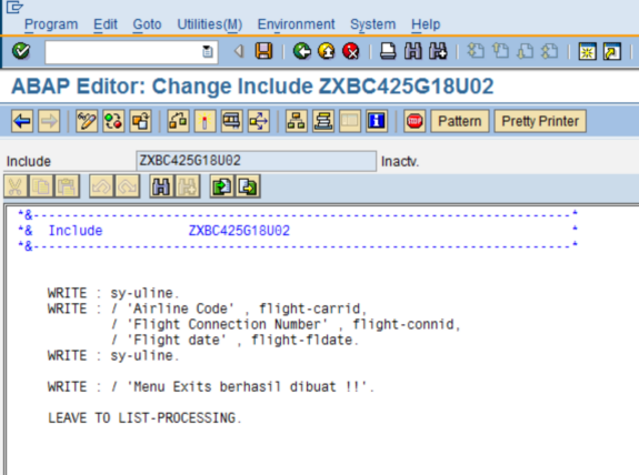 Within these pages will be exemplified how to insert Code on a SAP program that has the SAP Customer exits with type of the "Menu Exits", examples of t-Code that used are "BC425_18".